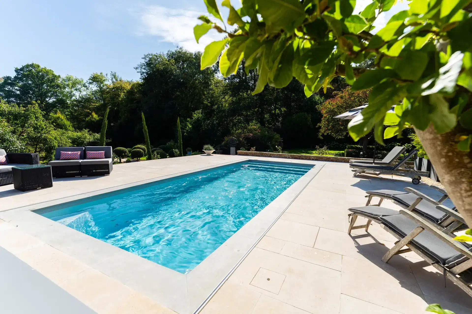 Aesthetically, the challenge was to create a design that blended seamlessly with the estate’s contemporary elegance. We selected premium downstand copings to achieve a sleek, modern edge and a super-high-water level that visually integrates the pool into its surroundings. The result is a sophisticated focal point that feels both timeless and tailored.