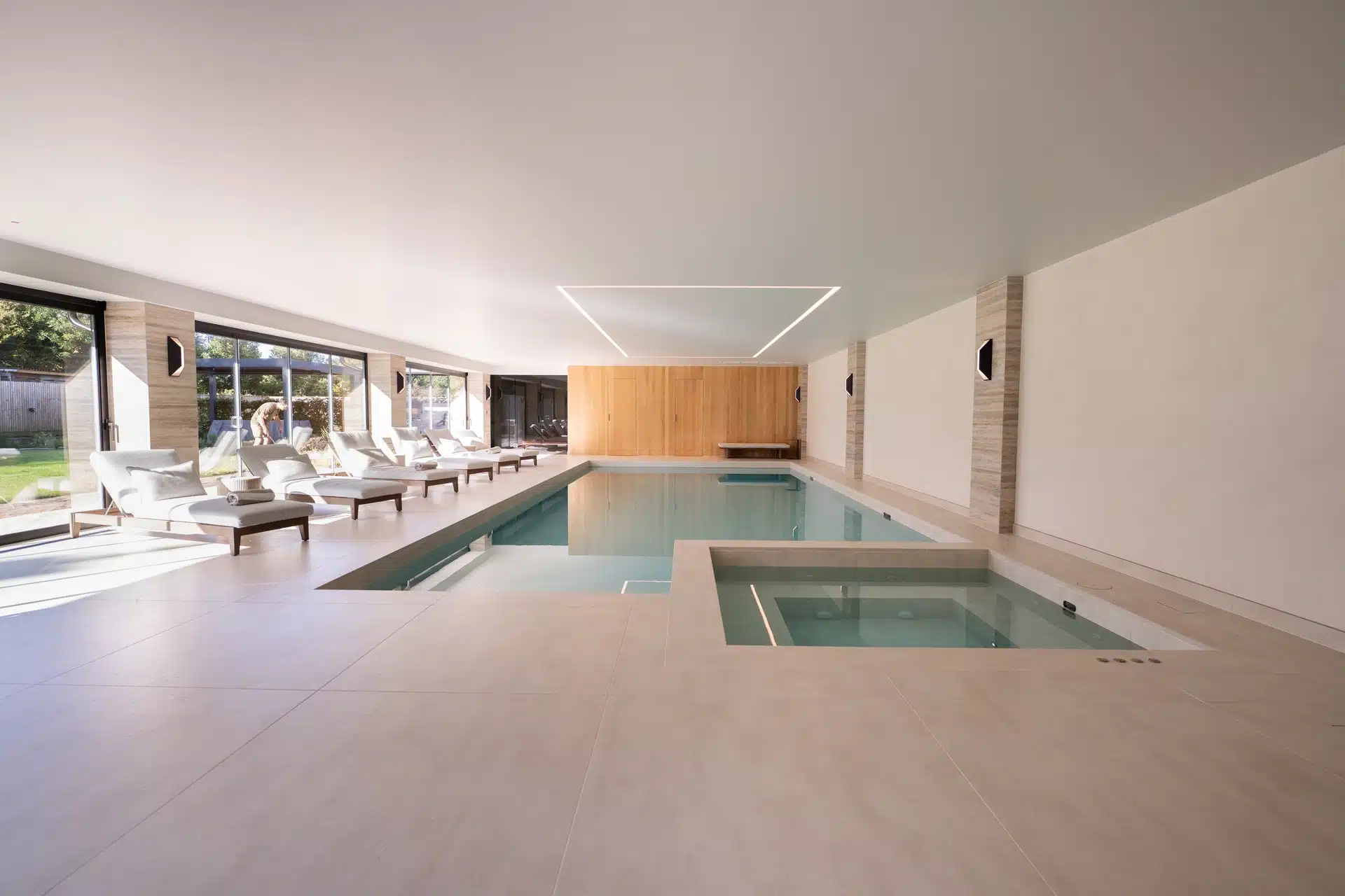 The result is a bespoke indoor pool and wellness space that feels completely at home within its setting — elegant, calming, and unmistakably luxurious. This project is a perfect example of how thoughtful design, close collaboration, and meticulous attention to detail can transform a swimming pool into a true centrepiece of the home.